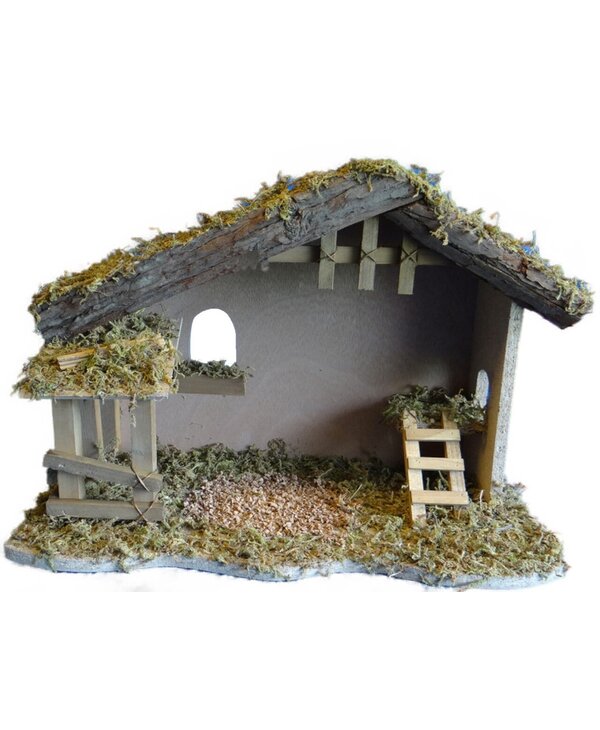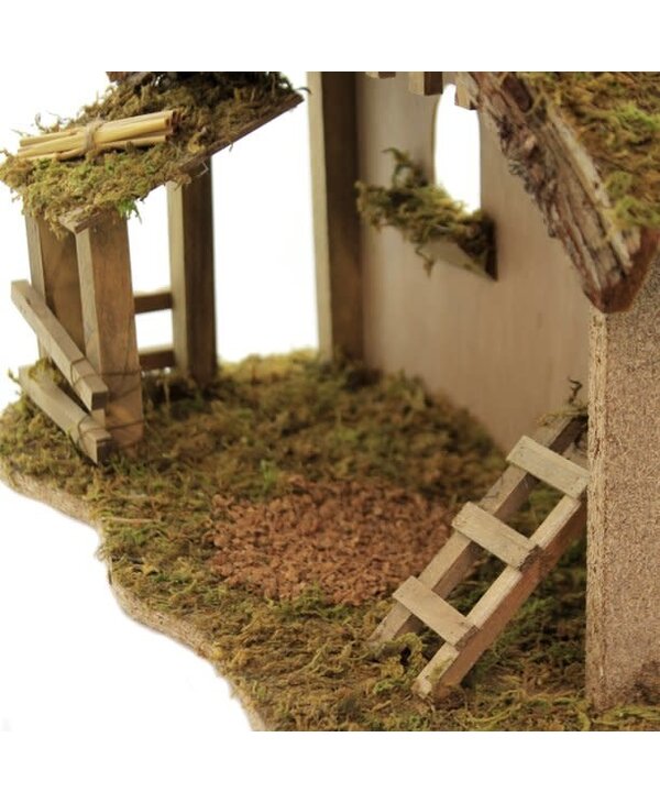 L'etable en bois avec mousse et écorce provient de la collection Fontanini Nativity à l'échelle de 5 "et mesure 10,5" H x 13 "L x 6,5" P. Fabriqué à la main avec soin en Chine....Lire plus