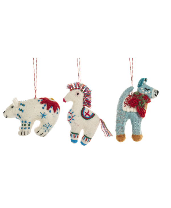 Ornement Animaux Laine Feutré Ass.3