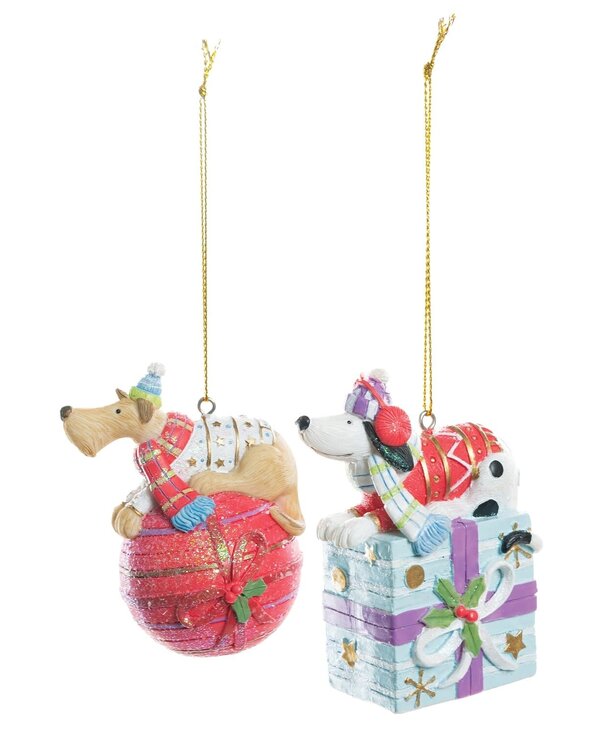 Ornement Chien sur Cadeau/Boule de Neige Ass.2 2.75"