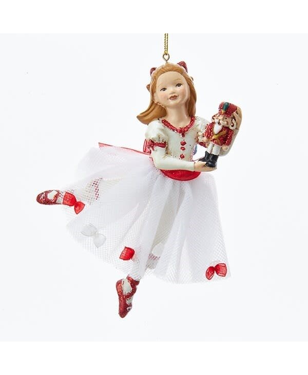 Ornement représentant Clara du ballet Casse-Noisette tenant son casse-noisette bien-aimé.