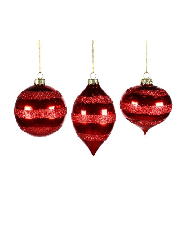 Ornement Rouge Rayé Brillant en Verre 8-13cm Ass.3