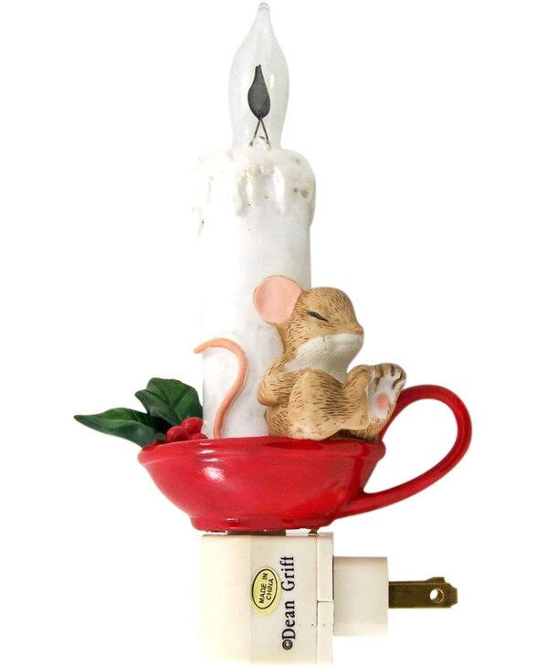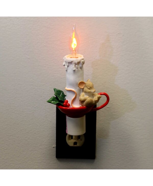 Souris endormie sur une bougie 7 pouces, résine, verre, pivotant, Noel, veilleuse murale