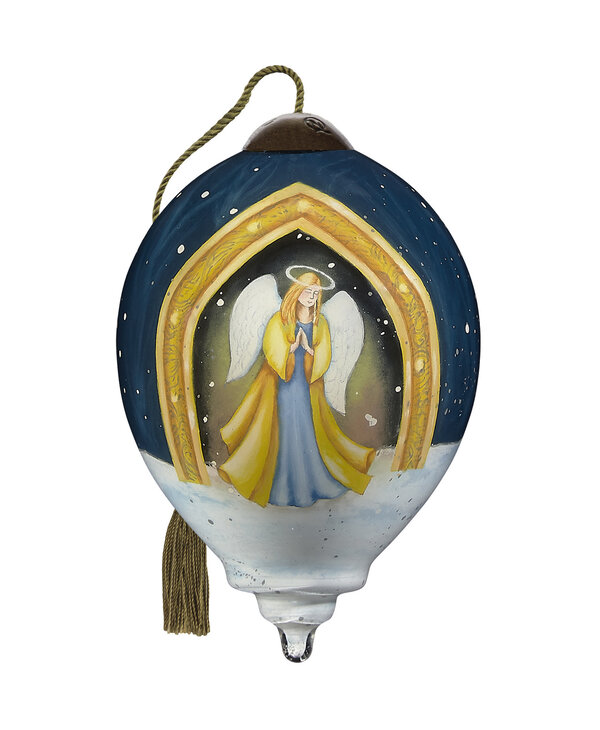 An adjustable tasseled cord allows for display on a Christmas tree or a Ne’Qwa Art® ornament stand.