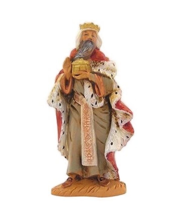 Start or enhance your Fontanini heirloom Nativity collection with Centennial King Melchior. This 5” scale virtually unbreakable polymer figurine of King Melchior bringing his gift of gold to the Baby Jesus is hand-painted in Italy with non-toxic paints.
