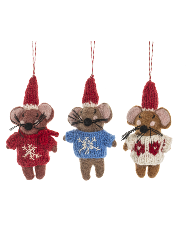 Ornement Souris Chandail Laine Feutré Ass.3