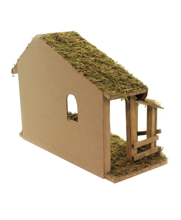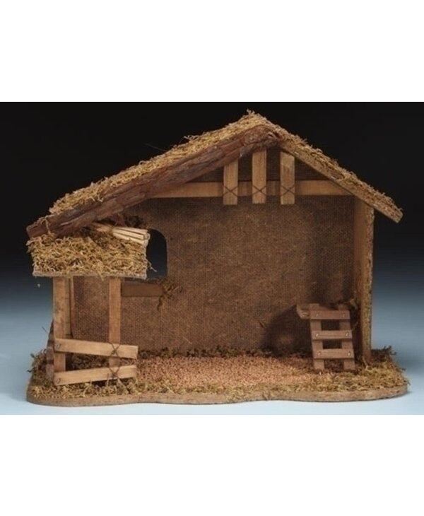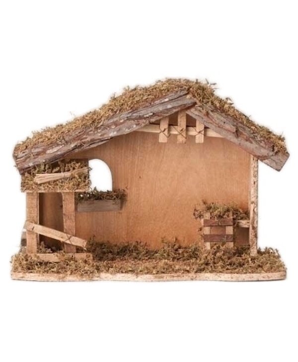 Wooden manger with moss and bark is from the 5" scale Fontanini Nativity collection and measures 10.5"H x 13"W x 6.5"D.